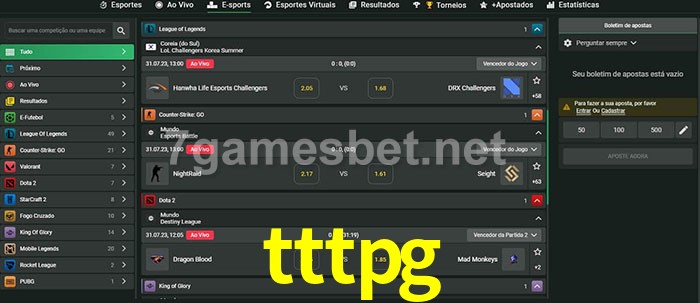 O tttpg oferece uma grande seleção de opções de apostas em e-sports com probabilidades competitivas